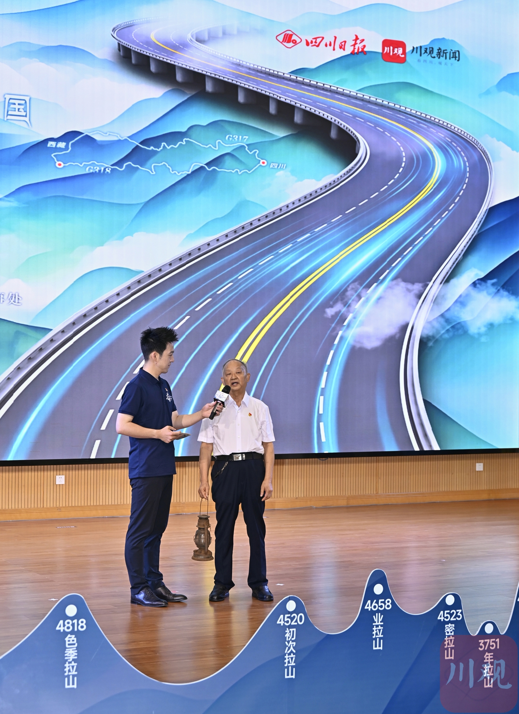 儀式上,參與“向云端——尋路川藏線上的中國”大型行走調研報道的年輕記者,從何多林手中接過馬燈。