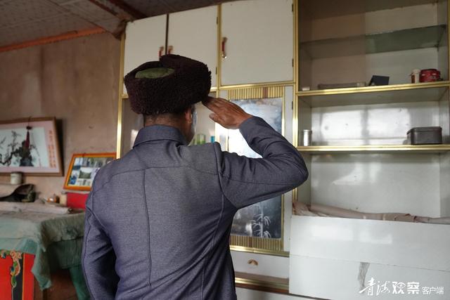 翻出當年的軍帽,看著鏡子里青春不在的自己,王啟莊重地敬了個軍禮。