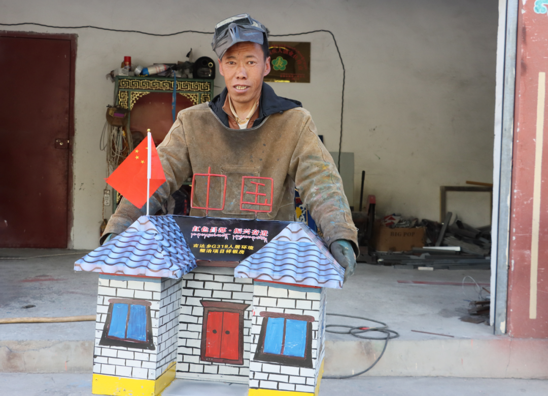 2025年5月,在八宿縣吉達(dá)鄉(xiāng)舉辦的“紅色昌都·振興奮進(jìn)”現(xiàn)代生產(chǎn)技能焊接比賽中,四郎次仁以人居環(huán)境整治為主題,把鮮紅的國旗和“中國”大字焊接在房頂,不僅生動展現(xiàn)了房屋的樣子,更彰顯了他對祖國的感激之情和赤誠之心,獲得了比賽第一名。