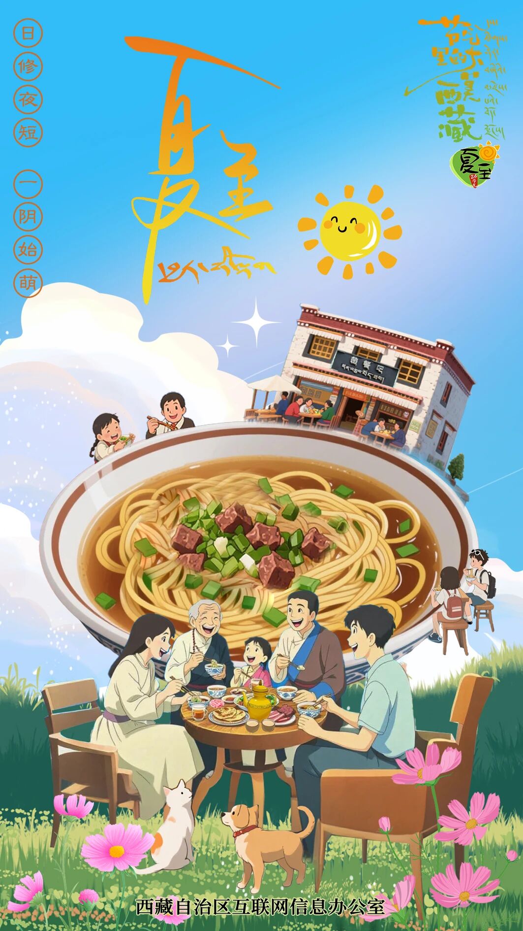 晝晷已云極,宵漏自此長。夏至,是一年中白晝最長、黑夜最短的一天。過了夏至,白晝便開始逐漸變短,正如民間所說的“吃過夏至面,一天短一線”。吃面是夏至的普遍習俗,人們通過吃面來慶祝夏至的到來,寄托對健康長壽和美好生活的期盼。在西藏,去甜茶館吃上一碗鮮美的牦牛骨湯藏面,正應和著這個古老傳統。