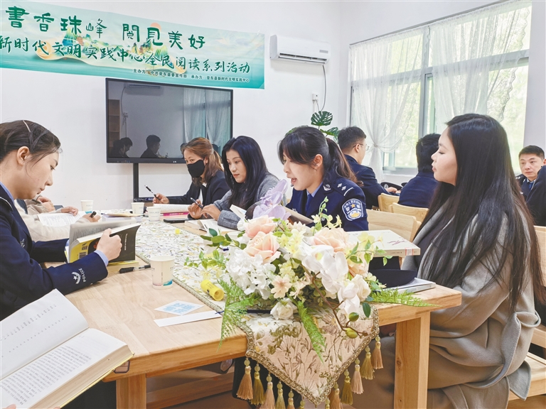 圖為活動參與者正在分享讀書心得?!∮浾摺≡黝D珠 通訊員 叢千慧 攝