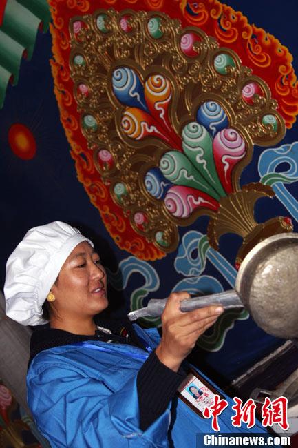 昌都地區八宿縣中學食堂的工人。中新社記者 徐長安 攝