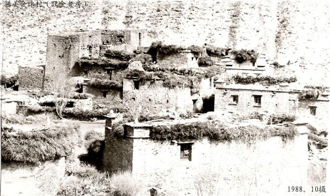西藏農民的老式房子,都是采用石塊或土坯塊砌的墻,建筑簡陋,不通風、形如窯洞。墻厚、門窗口矮小、狹窄,高度大約在2.5米左右,進門時要低著頭進去,要不然的話很容易碰頭。屋內根據大小來確定柱子,柱子上置放屋梁,一間房子的大小,約有8平方左右。房頂以細圓木為柃條,每根柃條順排相隔10厘米左右,再在柃條的上面重排一層強樹枝,在細樹枝的上面壓一層小石板,然后在石板上加一層約6至8厘米厚的黃土泥巴,用一種夯(是用小圓石板做的,將石板正中打一個小孔,再按個小木棍條,邊夯邊唱著歌)在屋頂上夯錘,夯平、夯實即成。藏族蓋房子和漢族蓋房子的形式差不多,在蓋之前也要選好地點,再請喇嘛看(算),來確定做房子動工的日子。他們蓋房子也根據經濟條件,一般經濟比較貧困的多為一層;家庭經濟較富裕的戶做兩層(上面一層住人,下面的一層一般是放牲畜和農具),有豪華的,有一般的,房子和家具質量及數量也和經濟條件掛鉤(請看民住圖片)。