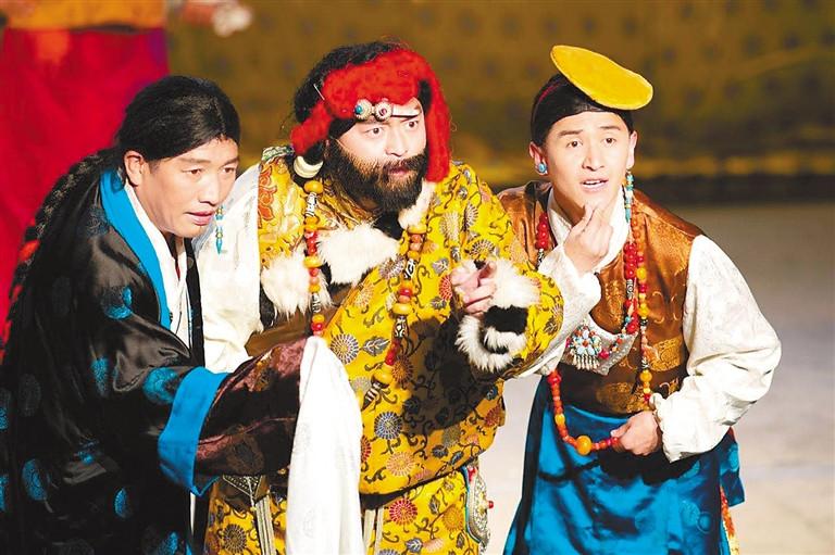 中國(guó)戲曲學(xué)院李永志教授長(zhǎng)期關(guān)注藏戲事業(yè),這次擔(dān)任了該劇的藝術(shù)指導(dǎo)和總導(dǎo)演,他的兩位年輕學(xué)生擔(dān)任漢語(yǔ)編劇和導(dǎo)演,甚至在開(kāi)場(chǎng)的溫巴戲中扮演了兩位仙女拉姆,戲中的大部分演員都是藏劇團(tuán)近年招收的青年才俊,利用業(yè)余時(shí)間排了這出戲,音樂(lè)則由藏劇團(tuán)經(jīng)驗(yàn)豐富的扎西羅布老師編制,舞美、服裝、道具等也都是利用了藏劇團(tuán)現(xiàn)有的資源。簡(jiǎn)單高效的人力、財(cái)力、物力投入能夠在短時(shí)間內(nèi)產(chǎn)生這樣一部作品,真正體現(xiàn)了小劇場(chǎng)劇目的靈活性、實(shí)驗(yàn)性,也令我們看到了年青一代藏戲工作者的創(chuàng)作熱情,看到了院團(tuán)對(duì)于探索創(chuàng)新的包容鼓勵(lì),這種精神對(duì)于促進(jìn)藏戲事業(yè)的持續(xù)良好發(fā)展實(shí)在難能可貴。