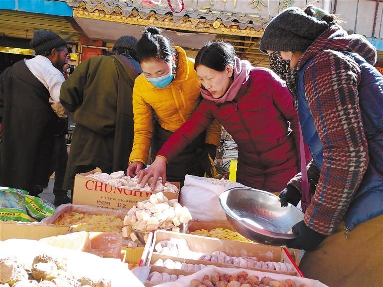 圖為拉薩市墨竹工卡縣工卡鎮群眾在購買年貨。洛桑克珠 記者 唐斌 攝