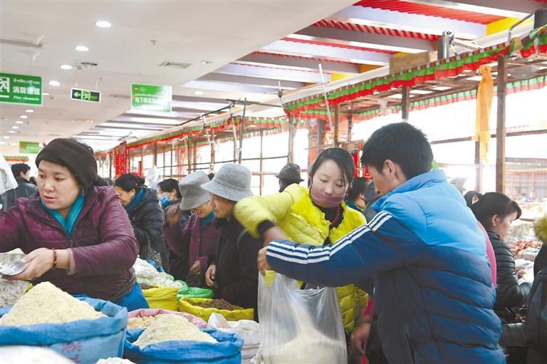 圖為那曲地區群眾正在綜合農貿市場選購年貨。記者 王曉莉 攝