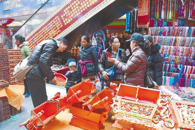 圖為近日,拉薩市民在八廓商城內選購切瑪盒。記者 李洲 攝