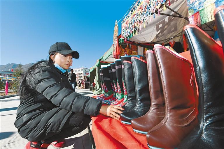 圖為拉薩市堆龍德慶區的老百姓在市場購買新年穿的傳統藏靴。記者 旦增西旦 攝