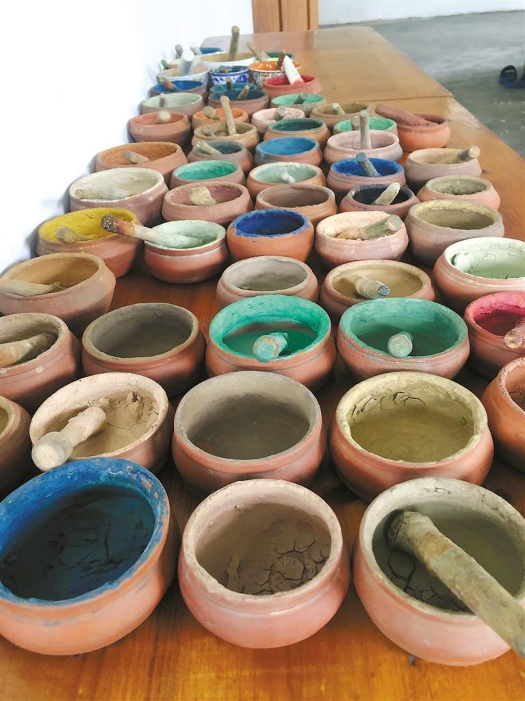 圖為繪制唐卡的顏料。記者 央金 裴聰 攝