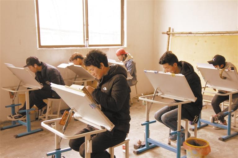 圖為學習手繪唐卡基本功的學生。記者 央金 裴聰 攝