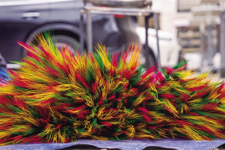“銷量好的時候一天可以賣近1000元,一般的時候也有500元左右。”央金仔細檢查著剛染好色的“羅薩梅朵”,她的手和臉因長時間接觸顏料而沾滿色彩。“以前‘羅薩梅朵’的顏色并不多,只有玫紅色,上色不均勻也沒人會說什么。但現在,顏色必須亮麗、均勻,這也體現了大家生活越來越好,生活品質越來越高。”央金笑著說。