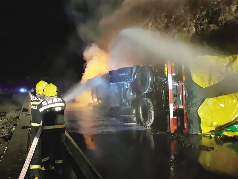 現(xiàn)場救援任務(wù)下達后,各班組按照任務(wù)分工,迅速展開戰(zhàn)斗。據(jù)悉,消防救援人員于當日23時35分,成功將現(xiàn)場火勢撲滅,并且對零星煙點和隱患進行了排查清理。次日0時3分,消防救援人員將現(xiàn)場移交公安、交警部門后撤離現(xiàn)場。次日0時20分,現(xiàn)場出警人員全部安全歸隊。