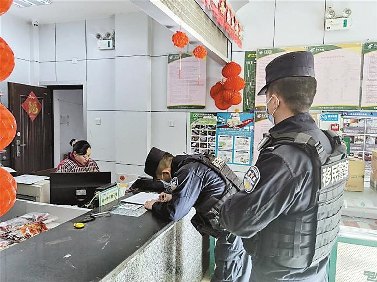 羌納邊境派出所民警核查從業(yè)人員、留守人員情況。 記者 胡文 王珊 通訊員 牛小亞 攝