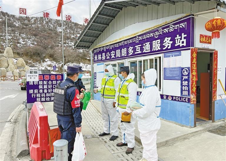 “大家辛苦了,我給大家?guī)砹藘蓧靥鸩瑁蠹铱爝^來喝一點,暖暖身子。”派出所副所長王鑫說道。隨后,他又將暖寶寶、絨襪、脖套等小物品交到了執(zhí)勤民警的手中。為做好轄區(qū)疫情防控工作,羌納邊境派出所在朗多互通執(zhí)勤點增設(shè)常駐警力,由于執(zhí)勤點長期處于室外,晝夜溫差較大等原因,邊境派出所黨支部提前謀劃,及時組織后勤民警采購一批保障物資,切實解決好執(zhí)勤一線上的后勤保障工作,為在戰(zhàn)“疫”線上的民警們帶來士氣。“單位黨支部時刻在為民警的冷暖著想,收到這些暖心的小物品,更加振奮了咱們執(zhí)勤民警的斗志,更加安心地堅守崗位。”冷風(fēng)中,臉蛋凍得通紅的民警牛小亞拿著單位送來的愛心小物品激動地說道。