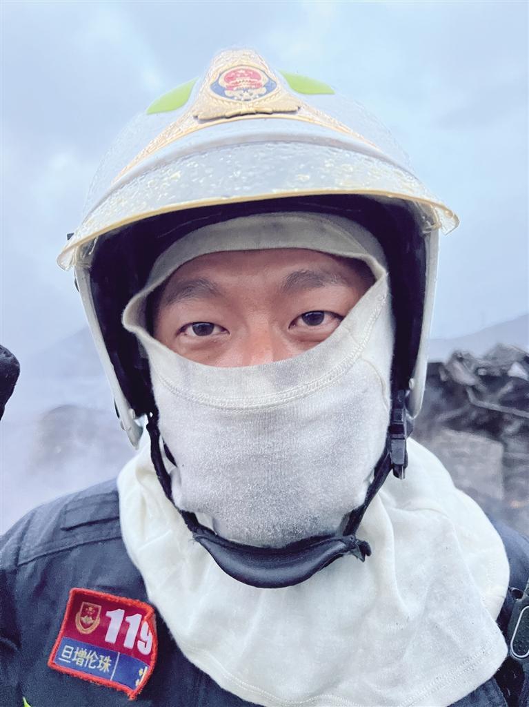撲救火災后的旦增倫珠。