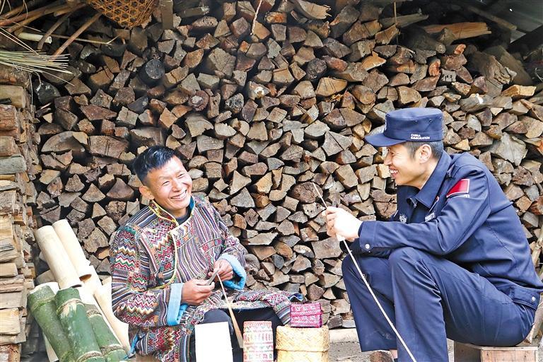 圖為墨脫邊境管理大隊各邊境派出所民警通過多種形式向村民宣傳全國兩會精神。記者 張猛 王珊 謝筱純 攝
