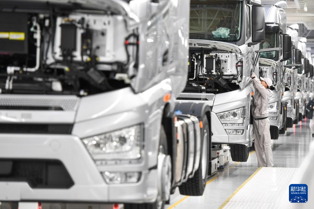 2024年2月19日,工人在位于吉林省長春市的一汽解放J7整車智能工廠裝配車輛。新華社記者 張楠 攝