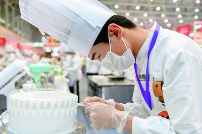 安徽省首屆職業院校在校生創意蛋糕技術大賽比賽現場。袁兵攝/光明圖片