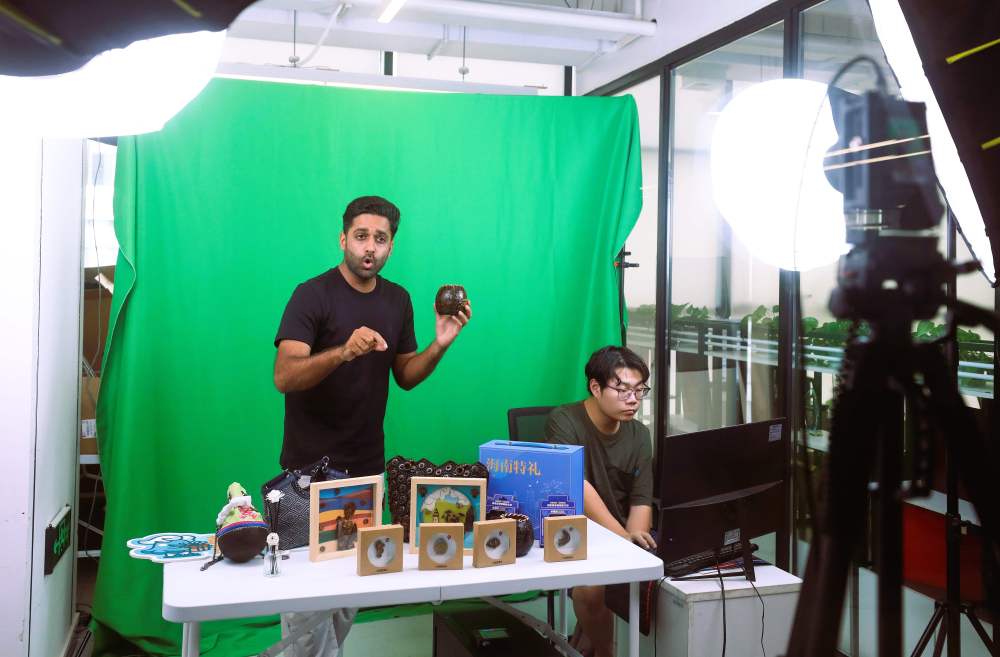 2025年9月22日,在海口復(fù)興城互聯(lián)網(wǎng)信息產(chǎn)業(yè)園,一名來(lái)自巴基斯坦的主播在直播間進(jìn)行直播帶貨。新華社記者 鄭悅 攝