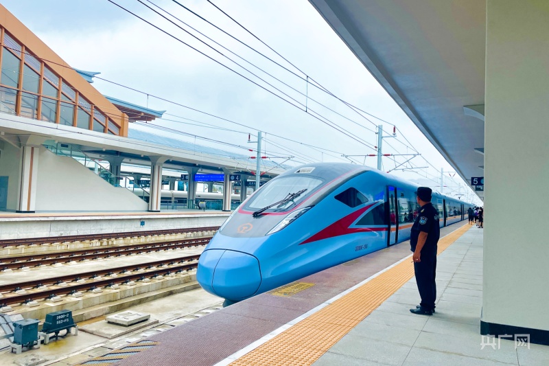 從貴陽北站發出的列車緩緩駛進荔波站(央廣網記者 楊贇 攝)