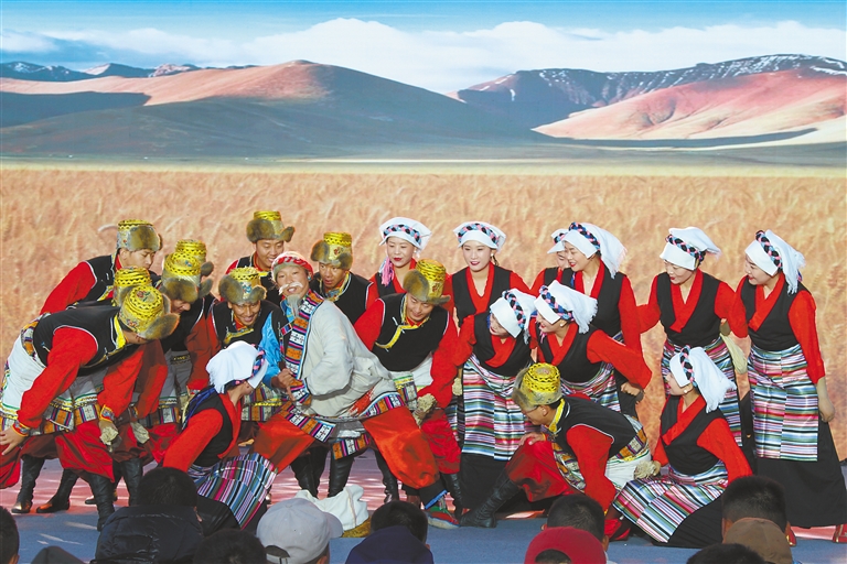 圖為拉薩遠(yuǎn)大藝術(shù)團(tuán)在西藏職業(yè)技術(shù)學(xué)院演出的情景劇《老西藏印記》。劉崢 記者 鄭璐 袁海霞 攝