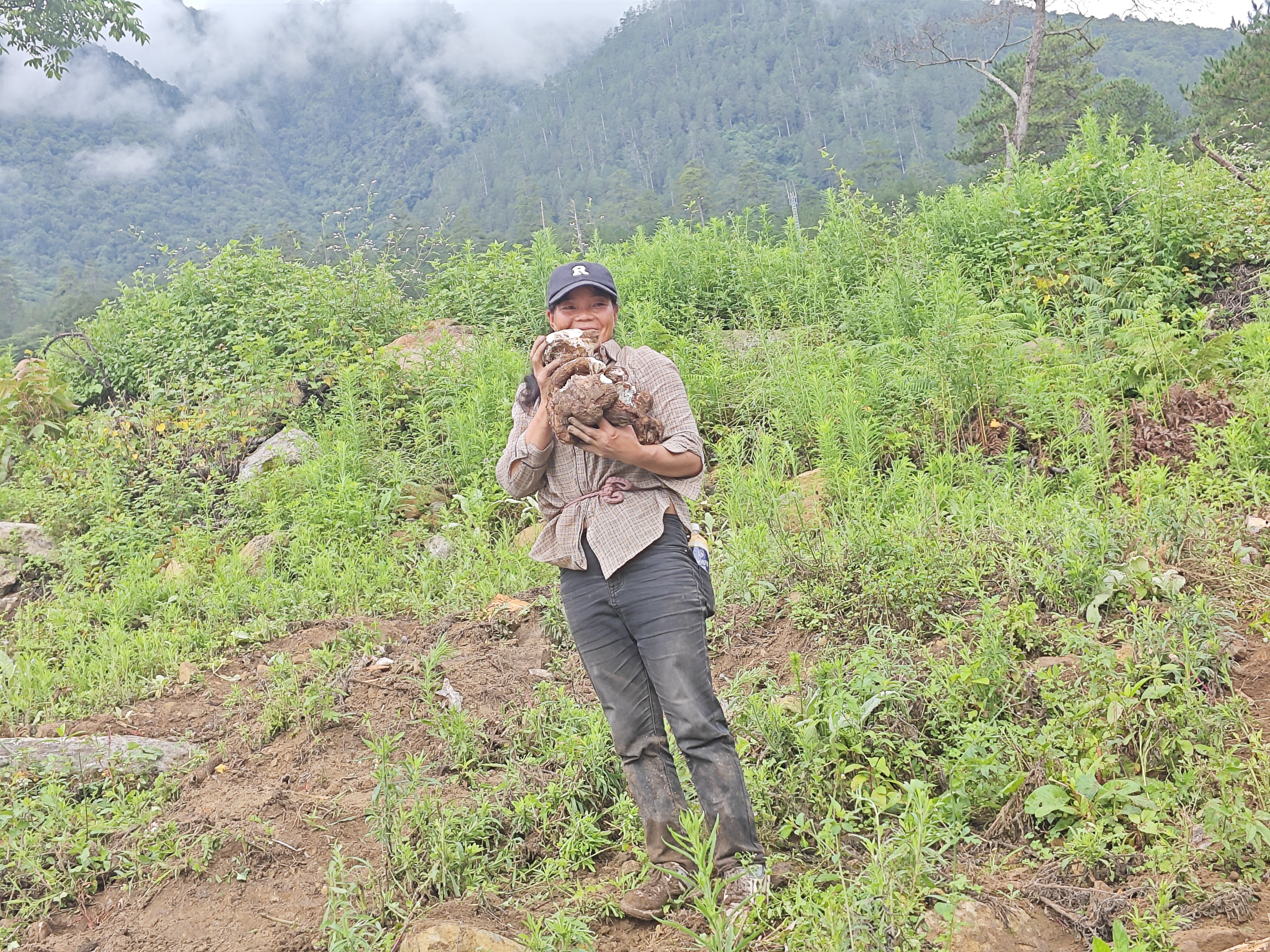 茯苓有利水消腫、補益心脾、寧心安神及增強免疫等藥用價值,廣受消費者青睞。而京都村地處喜馬拉雅山南亞熱帶濕潤氣候區,土壤肥沃、透氣性好,全年光照充足,非常適宜茯苓生長。