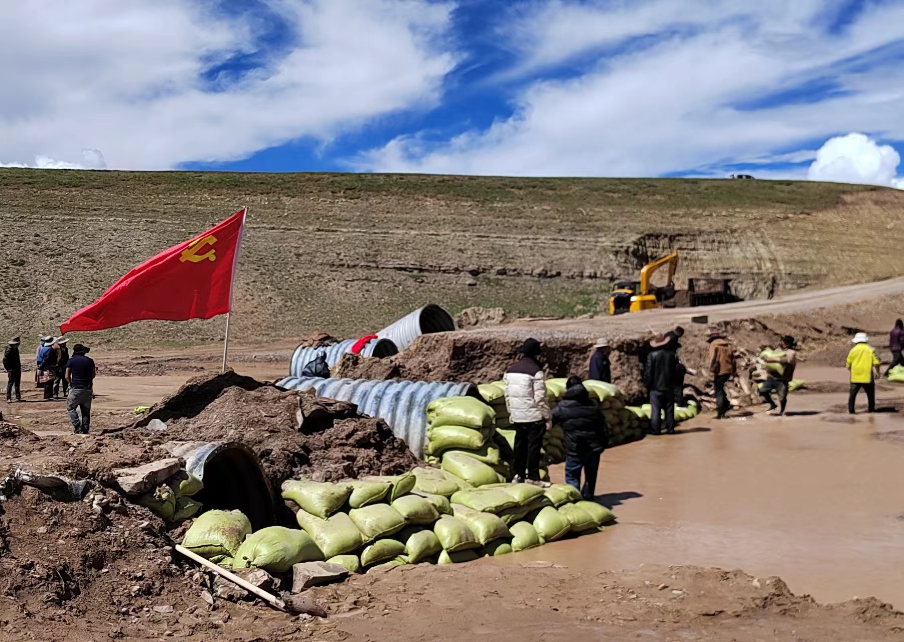 7月15日至16日,受近日連續(xù)強降雨影響,安多縣多瑪鄉(xiāng)扣木扎慶村前往縣城方向19公里以內(nèi)出現(xiàn)大面積水毀路段、邊坡坍塌,嚴重影響了村民的出行和生產(chǎn)生活。面對這一緊急情況,安多縣多瑪鄉(xiāng)扣木扎慶村駐村工作隊迅速行動,帶領(lǐng)廣大群眾展開了一場緊張而有序的道路搶修攻堅戰(zhàn)。