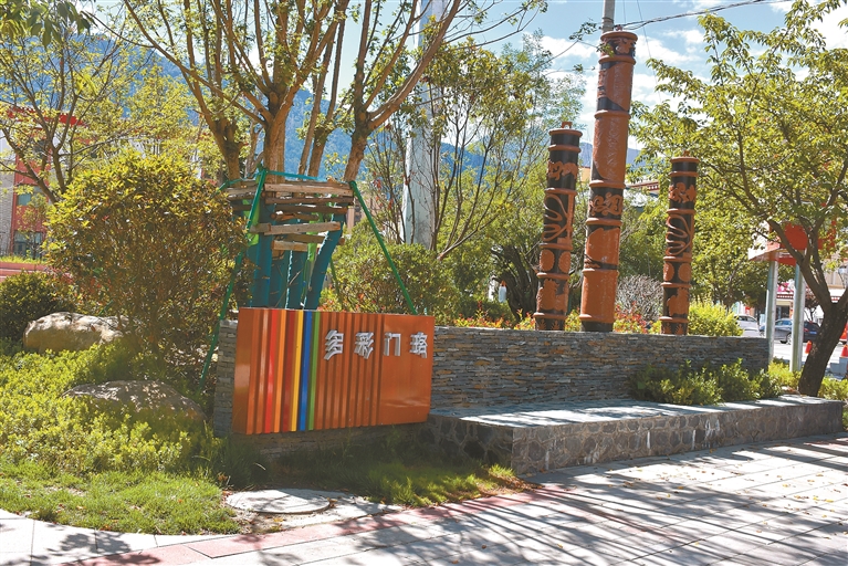 圖為位于林芝市巴宜區迎賓大道的“多彩門珞”口袋公園一角。記者 劉楓 攝