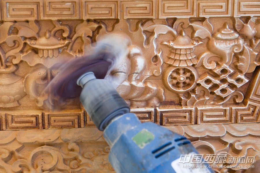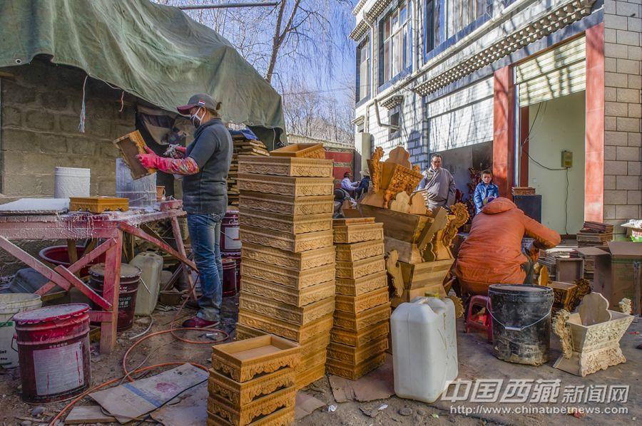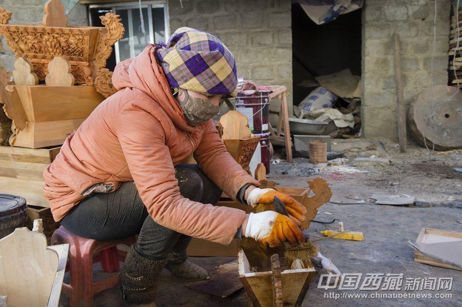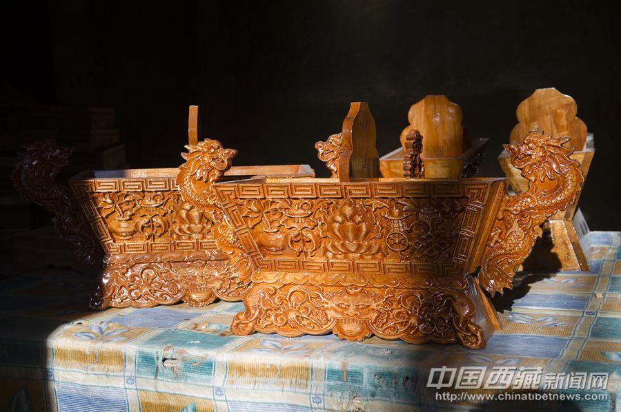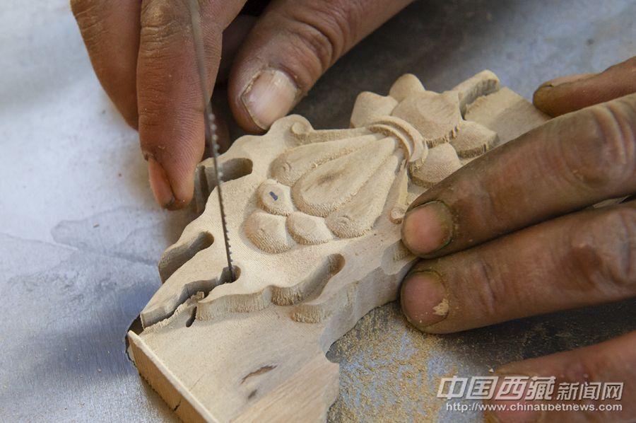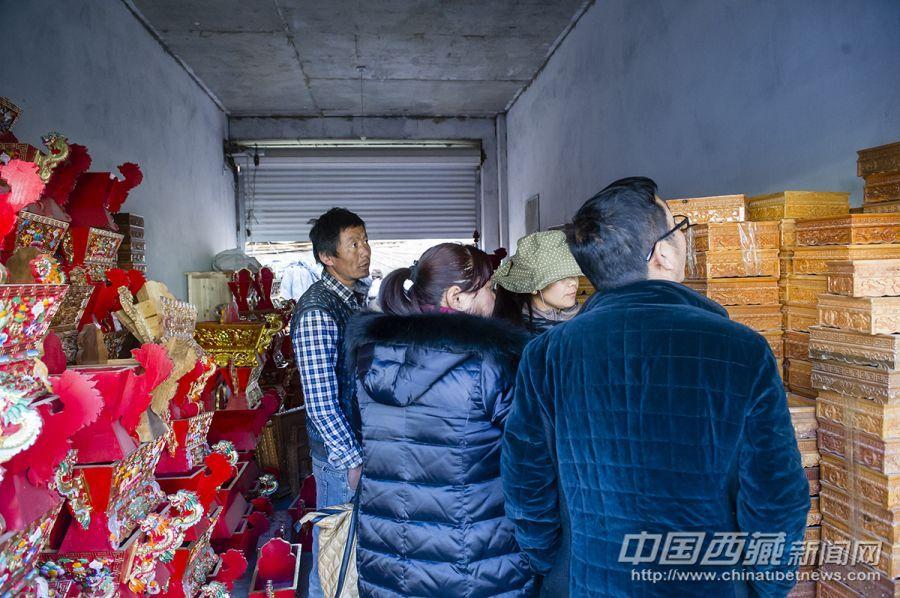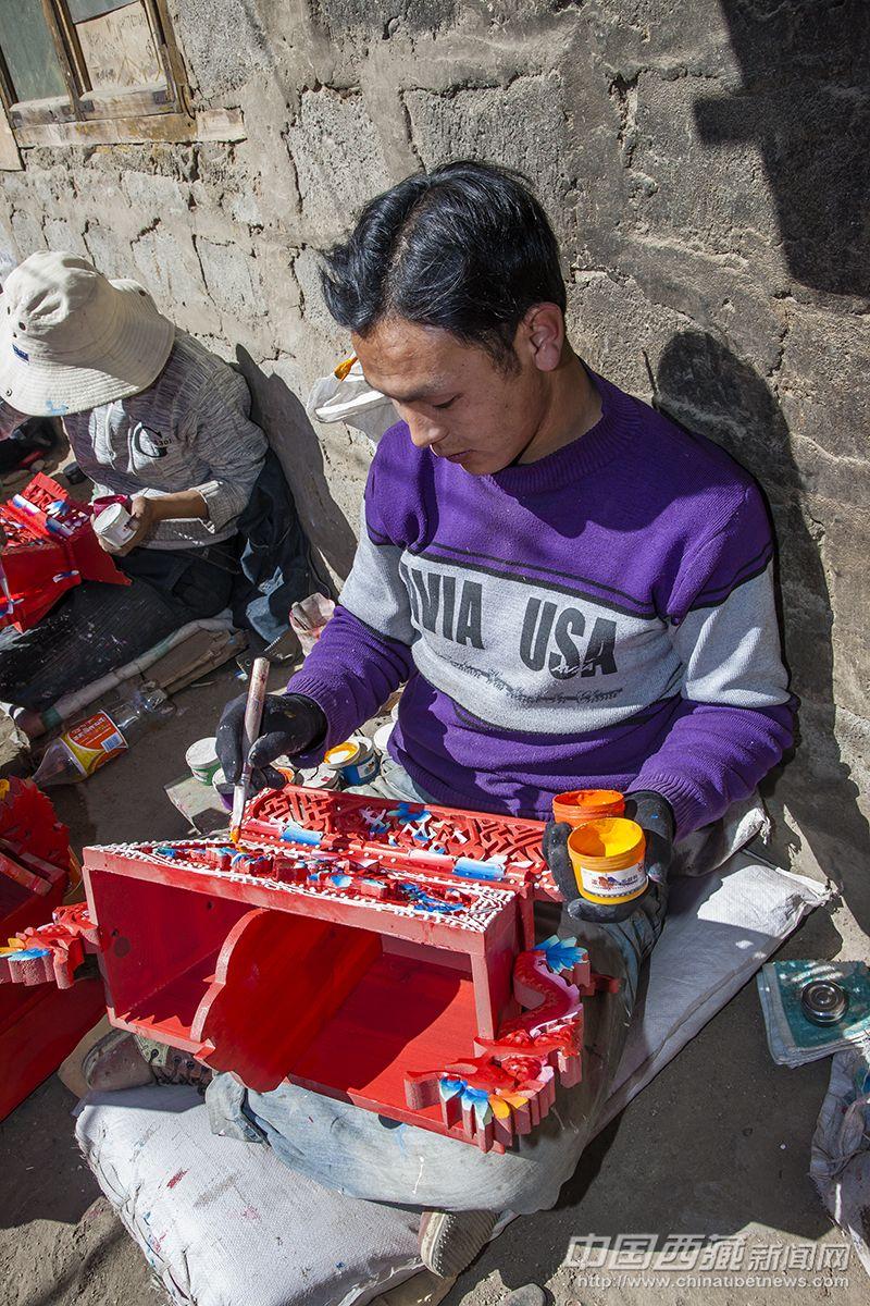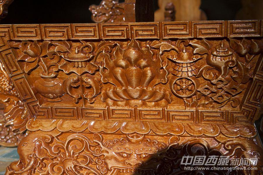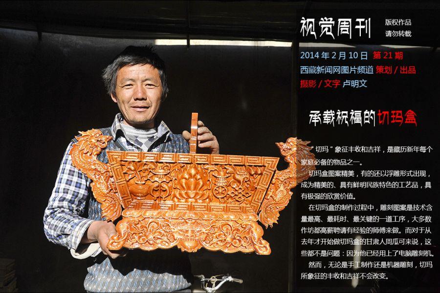 “切瑪”象征豐收和吉祥,是藏歷新年每個家庭必備的物品之一。 “切瑪”藏語叫“楚酥切瑪”,意為“酥糕彩斗盒”,也有人叫“豐收吉祥斗”或“吉祥斗”。如果要問節慶時用“切瑪”的習俗從什么時候開始?次多曾在《西藏民俗》1996年第2期發表文章說,“切瑪”源自人們對藏戲創始人——唐東杰布的供奉。“在露天公演的藏戲場地上,場中立一根柳樹,柳枝上掛一張唐東杰布的畫像,底下放上斗裝糌粑,上面放上幾塊酥油片,中間插一根彩箭,表示吉祥圓滿,這個簡單而大方的吉祥物是今天我們看到的小型精致的‘切瑪波’的前身。” 現在我們在街頭看到的“切瑪波”,圖案更為精美,有的還以浮雕形式出現,成為精美的、具有鮮明民族特色的工藝品,具有極強的欣賞價值。 “切瑪波”看似簡單,制作工藝卻十分繁瑣,需經過雕刻成型、膩子抹平、噴紅色底漆、畫花紋、噴定色清漆、涂金漆等工序。而第一道工序雕刻成型最為復雜,若是浮雕形式,就需要先把底板鏤雕后,再雕刻“浮出”部分的小件,然后粘在底板上。 在切瑪盒的制作過程中,雕刻圖案是技術含量最高、最耗時、最關鍵的一道工序,大多數作坊都高薪聘請有經驗的師傅來做。而對于從去年才開始做切瑪盒的甘肅人周瓜可來說,這些都不是問題:因為他已經用上了電腦雕刻機。 然而,無論是手工制作還是機器雕刻,切瑪所象征的豐收和吉祥不會改變。 圖文:盧明文