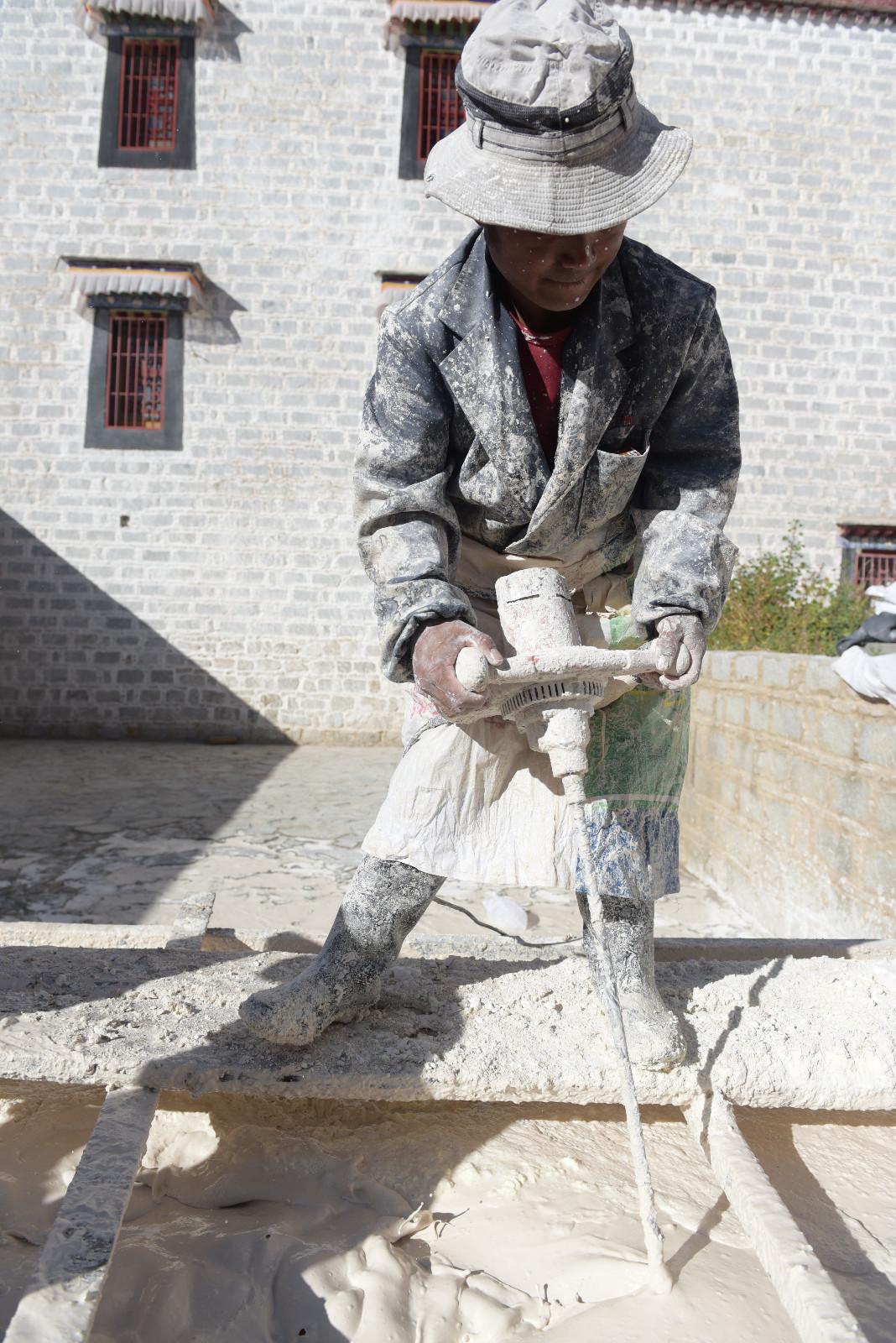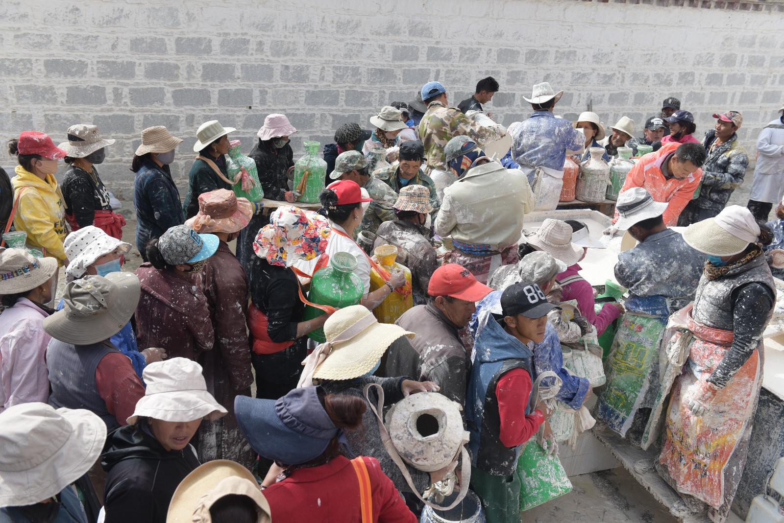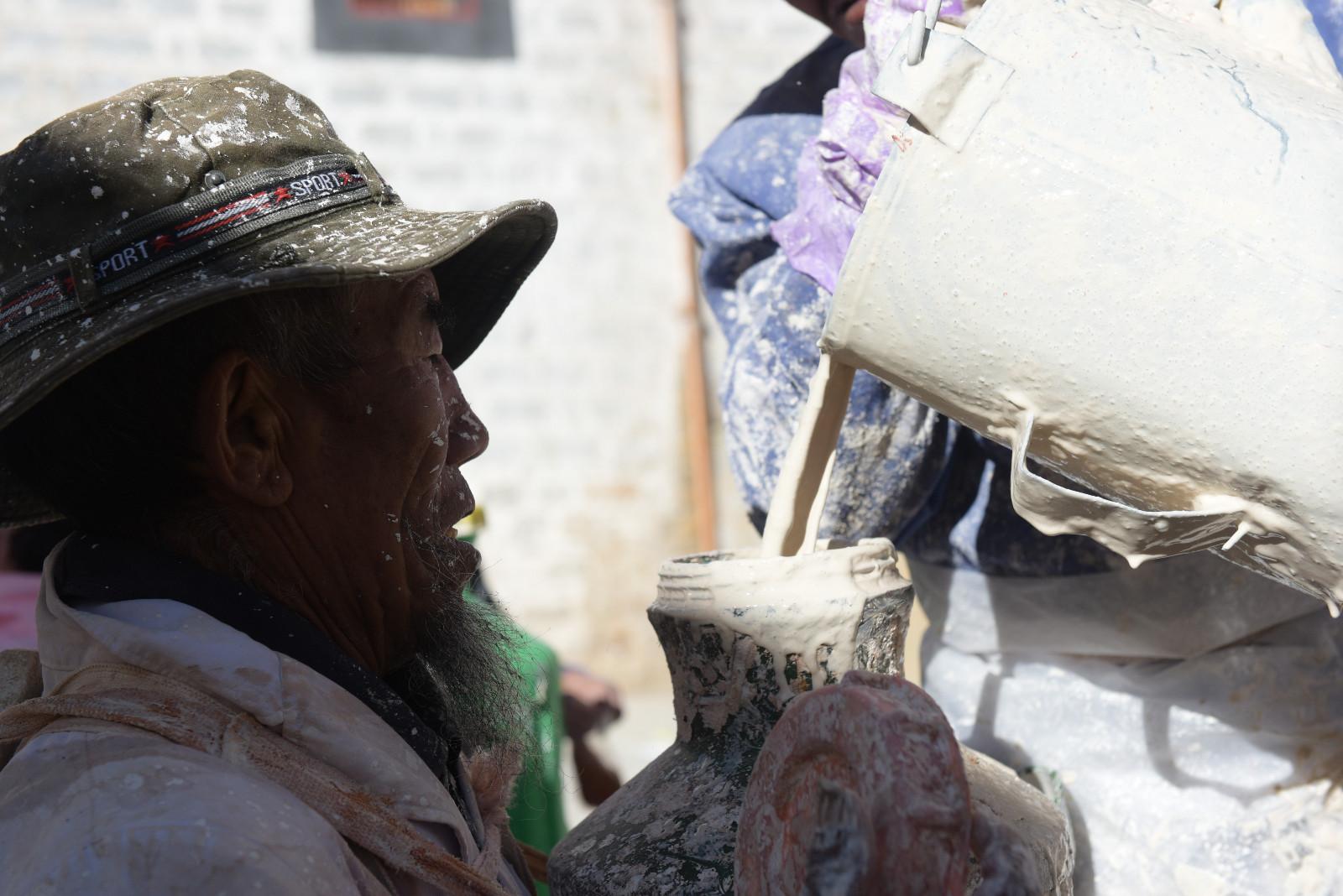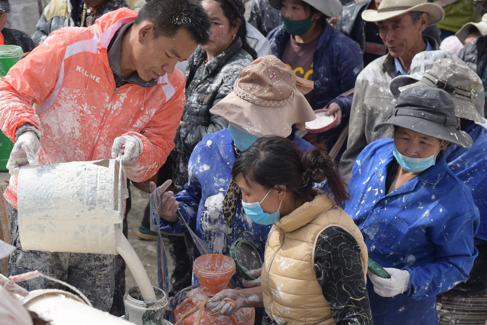 每年藏歷9月22日是西藏的降神節,傳說在這一天之前刷的最干凈的房間,在這一天會有神仙降臨居住。每年布達拉宮都會首先開始粉刷宮殿,以嶄新的面貌迎接降神節的到來。每年的粉刷其主要目的是為了保護建筑本身。雨季過后,經過雨水沖刷的布宮墻體土質疏松,木質材料容易蛀蟲、腐爛,所以與其他建筑不同,粉刷布宮的涂料中要添加牛奶、白糖、藏紅花等。