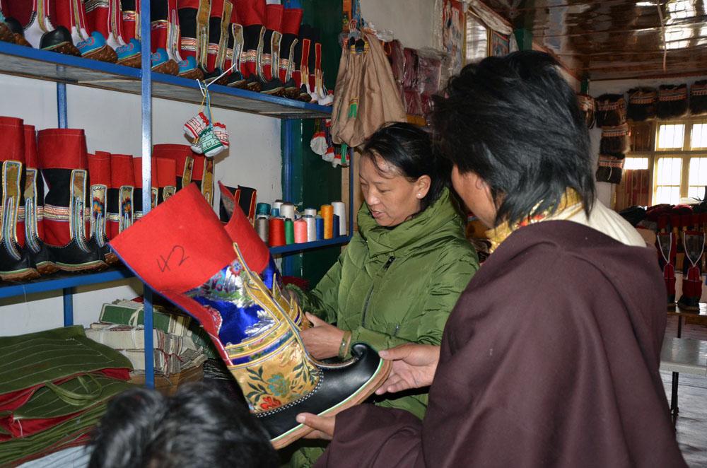 在西藏制作藏靴已有1000多年的歷史,傳統(tǒng)制作藏靴的村莊遍布西藏各地。藏區(qū)各地的藏靴,風格各有不同,昌都、藏北的渾厚樸實,大方不俗,山南、日喀則的精巧細致、典雅高貴,而拉薩的藏靴集各地之大成,色彩鮮艷,雍容華貴。