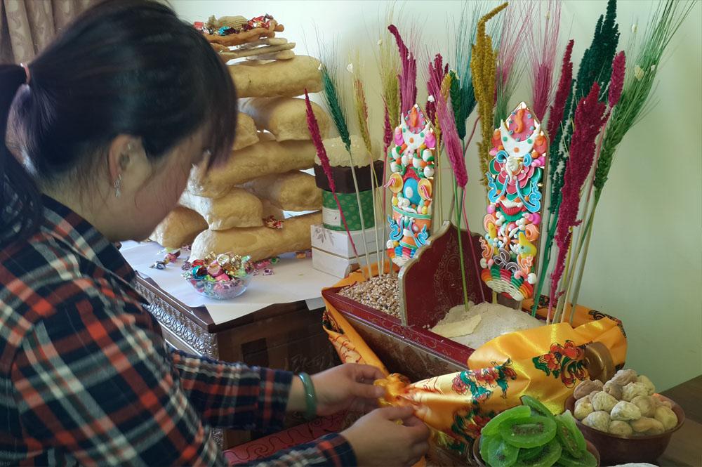 “切瑪盒(五谷斗)”是每個藏族人家里必備的一種盛供品的木質盒子。而在此盒子里所盛的供品則稱為“切瑪”,藏族在所有喜慶活動中使用此供品,如:過年、喬遷、舉辦婚禮時均需使用此物。
