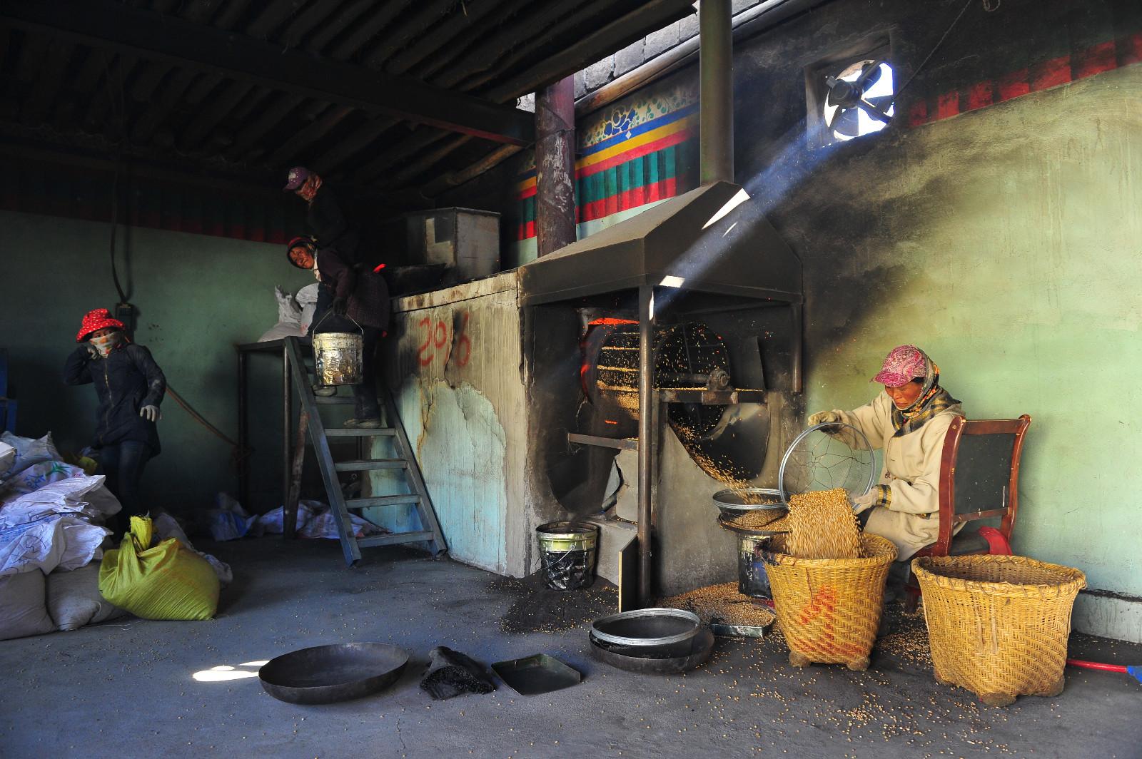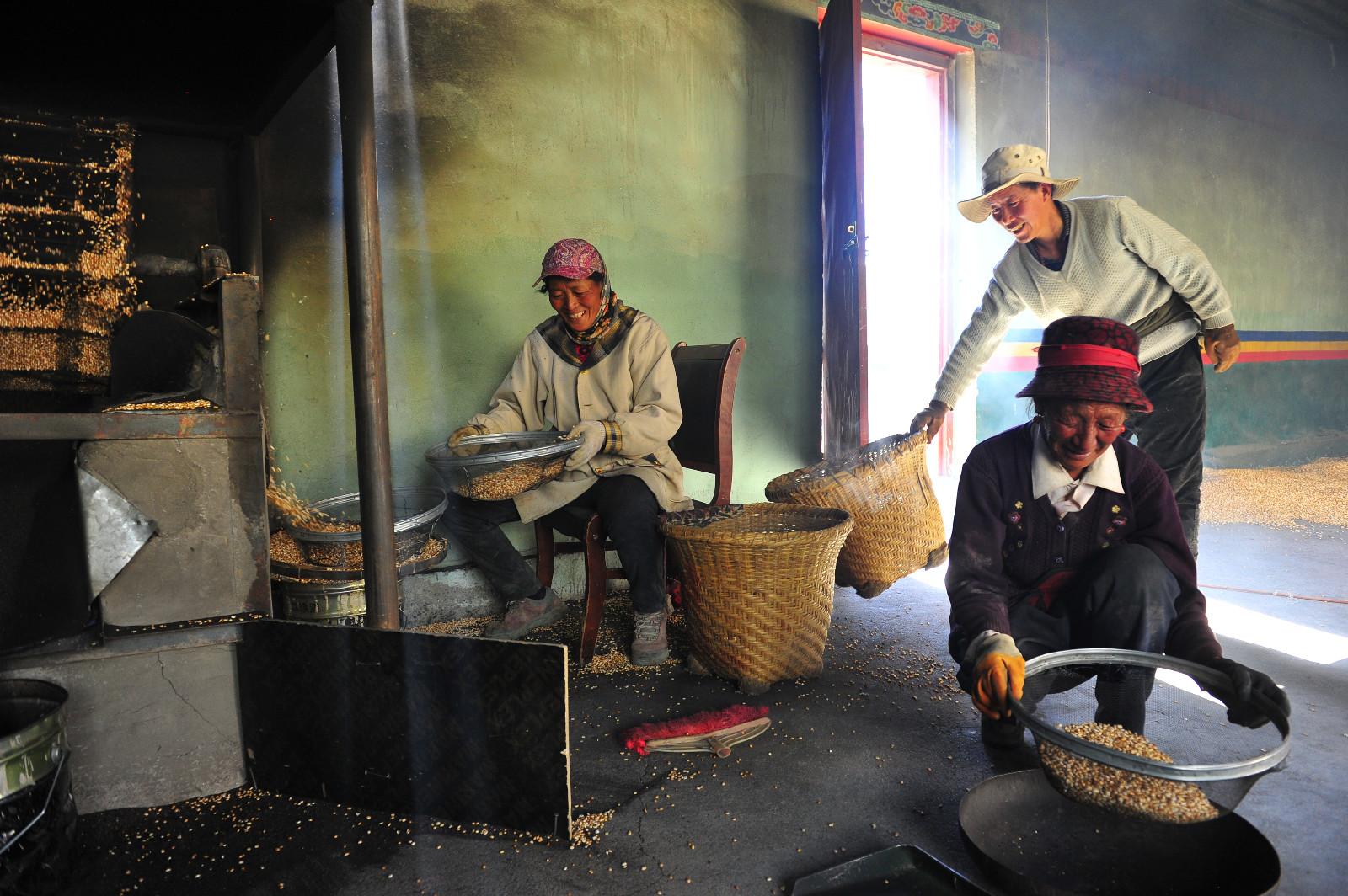 崗次仁雪山融化的雪水孕育出獨有的白青稞,鄉村作坊式工廠推動了老百姓脫貧致富,現在小作坊也能“磨出”大產業。