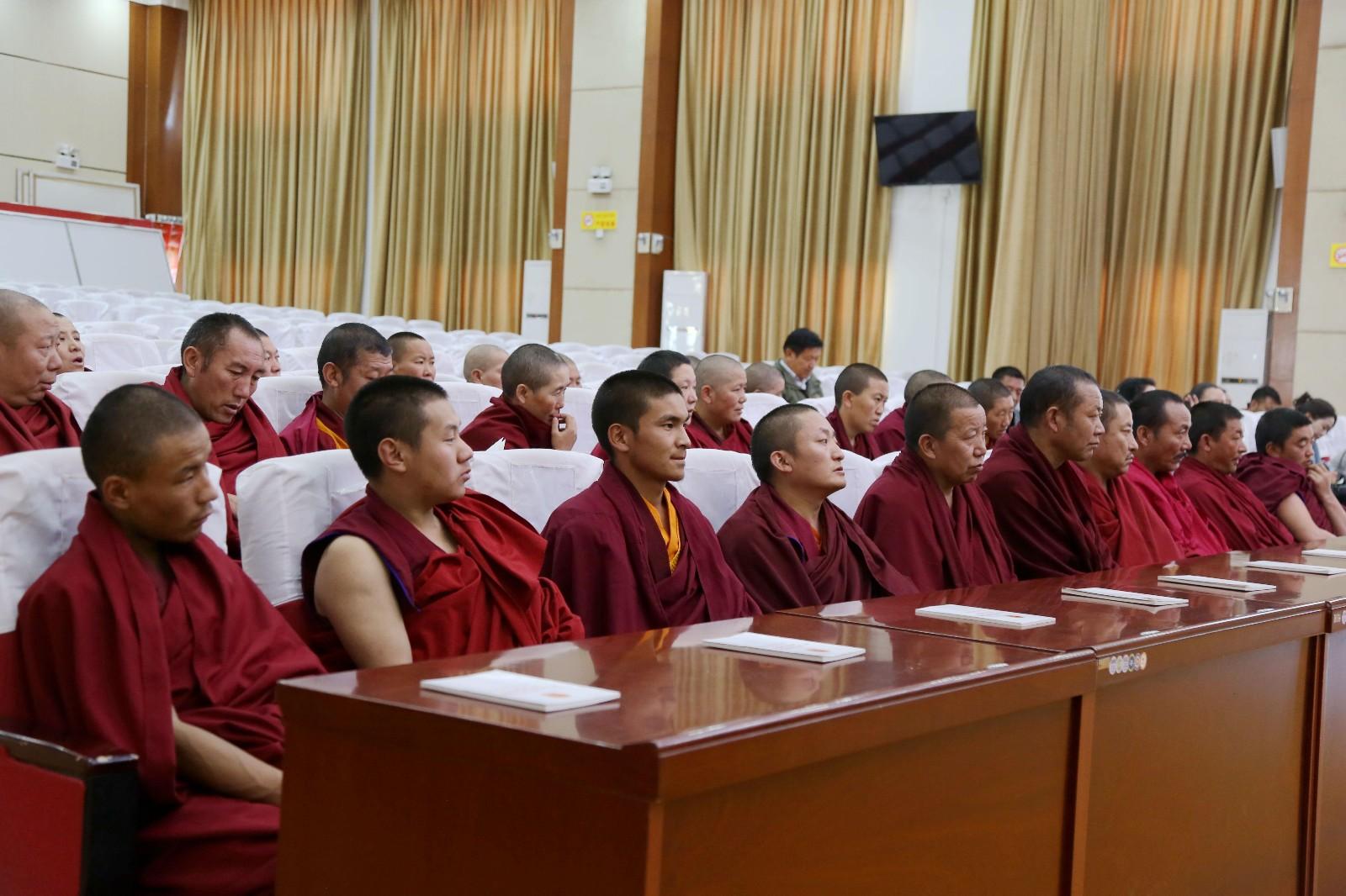 為進一步增強城關區宗教領域負責人的法律意識,提高法治觀念,加強寺廟法治宣傳建設工作,深化“遵循四條標準,爭做先進僧尼”教育實踐活動。近日,拉薩市城關區委統戰部聯合拉薩市司法局,邀請市司法局基層科米瑪次仁老師開展學習宣傳《憲法》專題講座,城關區委常委、統戰部部長拉巴次仁主持活動,駐寺干部和僧尼常務副主任、僧尼委員共計89人參加。