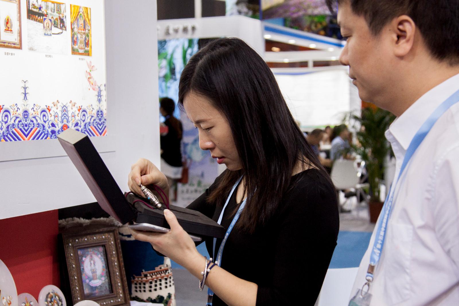 以“智能、智慧、智造、節能”為主題的第十五屆中國國際中小企業博覽會在廣州開幕。25家西藏中小企業及工藝美術大師攜展品在西藏館集中亮相,推介高原特色產品,展示企業發展形象。