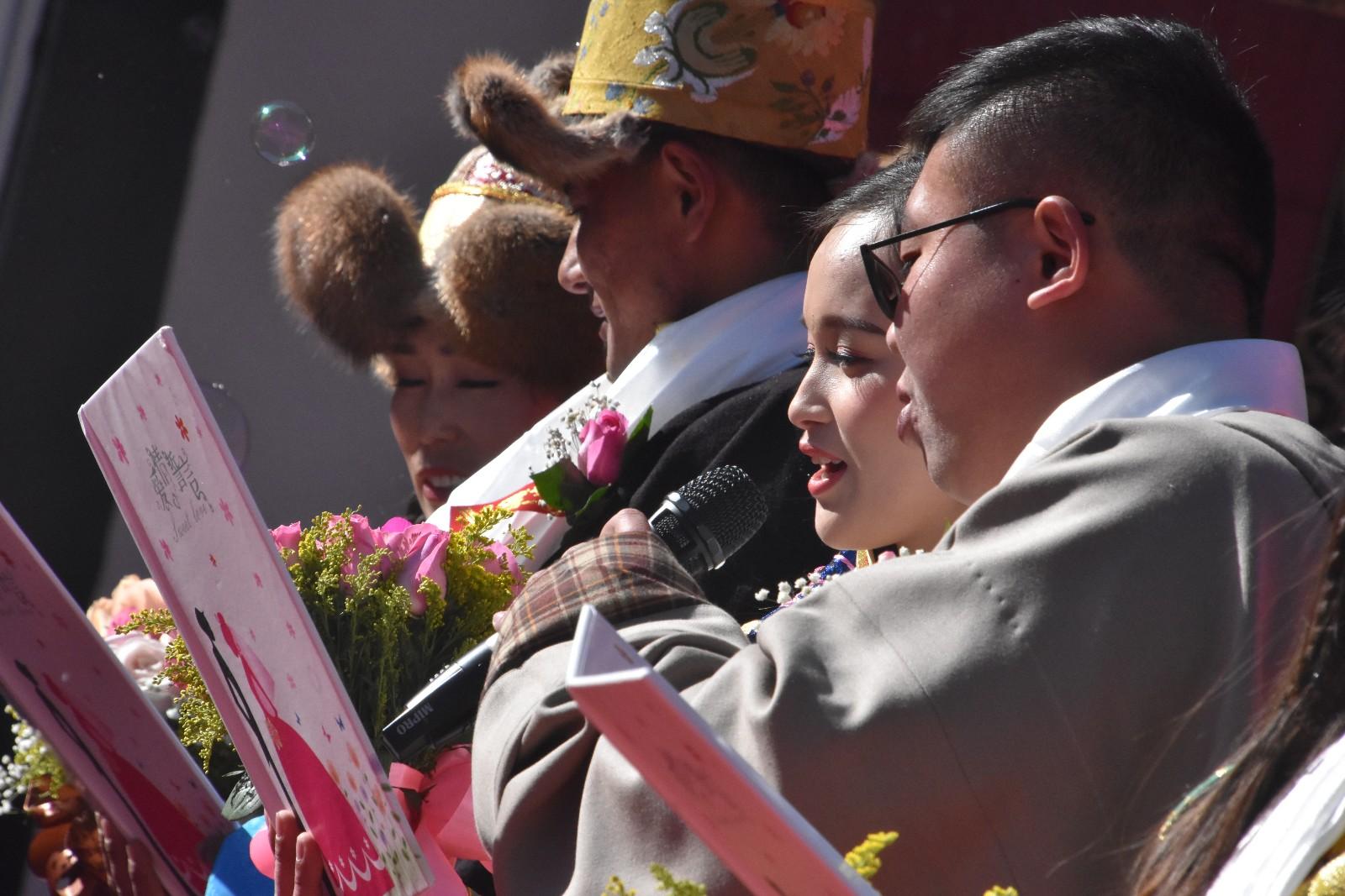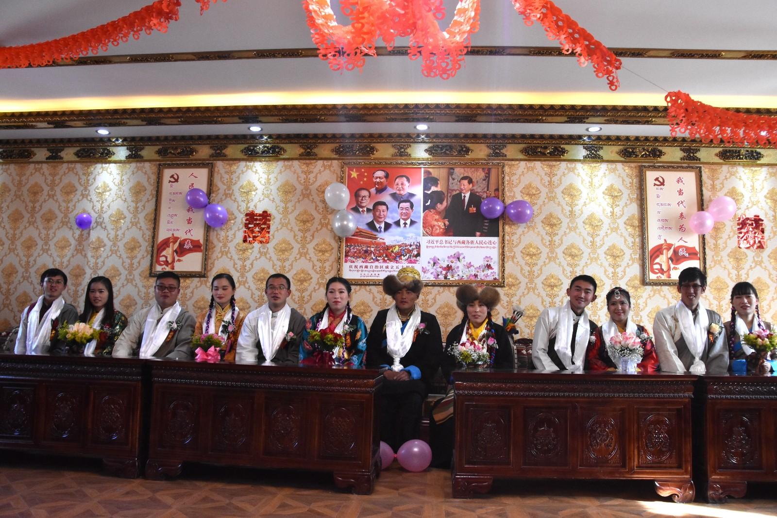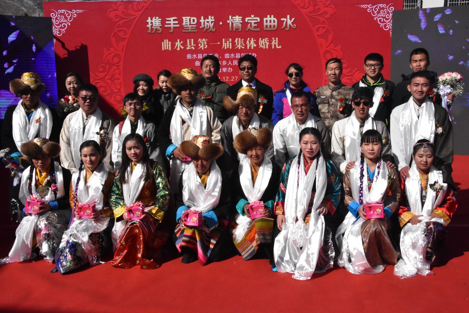 12月27日,拉薩市曲水縣第一屆集體婚禮在南木鄉人民政府大院舉行。參加集體婚禮的有該縣干部職工和群眾組成的6對新婚夫婦,2對金婚、銀婚夫婦,現場眾多親朋好友齊來慶賀。