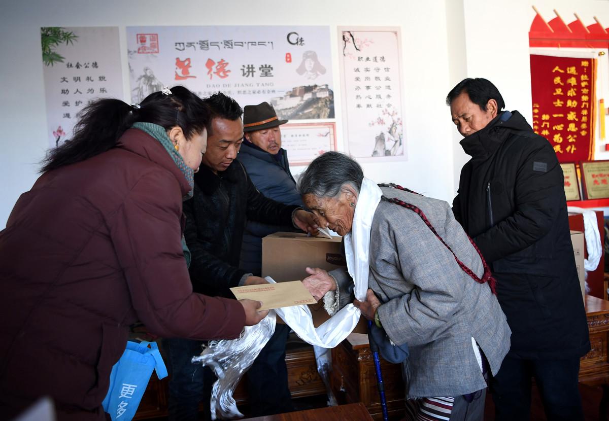 1月23日上午,城關區策門林社區居委會通過各種渠道籌措資金近22萬元,向轄區內的貧困戶、低保戶、低保邊緣戶、三老人員、壽星、雙聯戶、孤寡老人、各組組長發放節前慰問品和慰問金,讓他們感受到黨和政府的關愛、關心,預祝轄區居民過上祥和幸福的春節和藏歷新年。