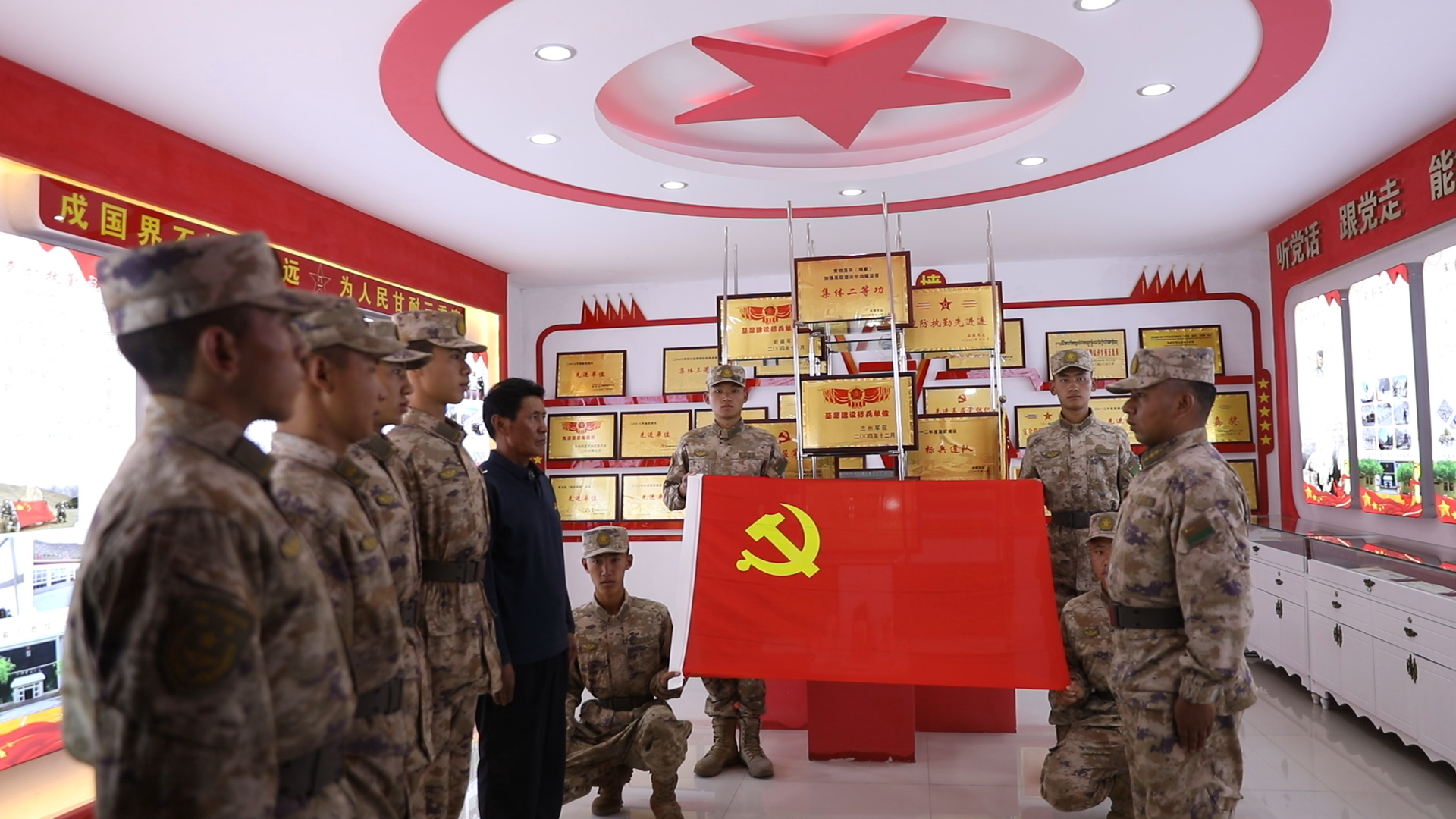 “我剛到連隊的時候,這個地方光禿禿的,什么都沒有……”走進連隊,次仁羅布用親身經歷向官兵們講述連隊歷史,一起回顧連隊一代代官兵戍邊守防的光榮歷程,并重溫入黨誓詞。
