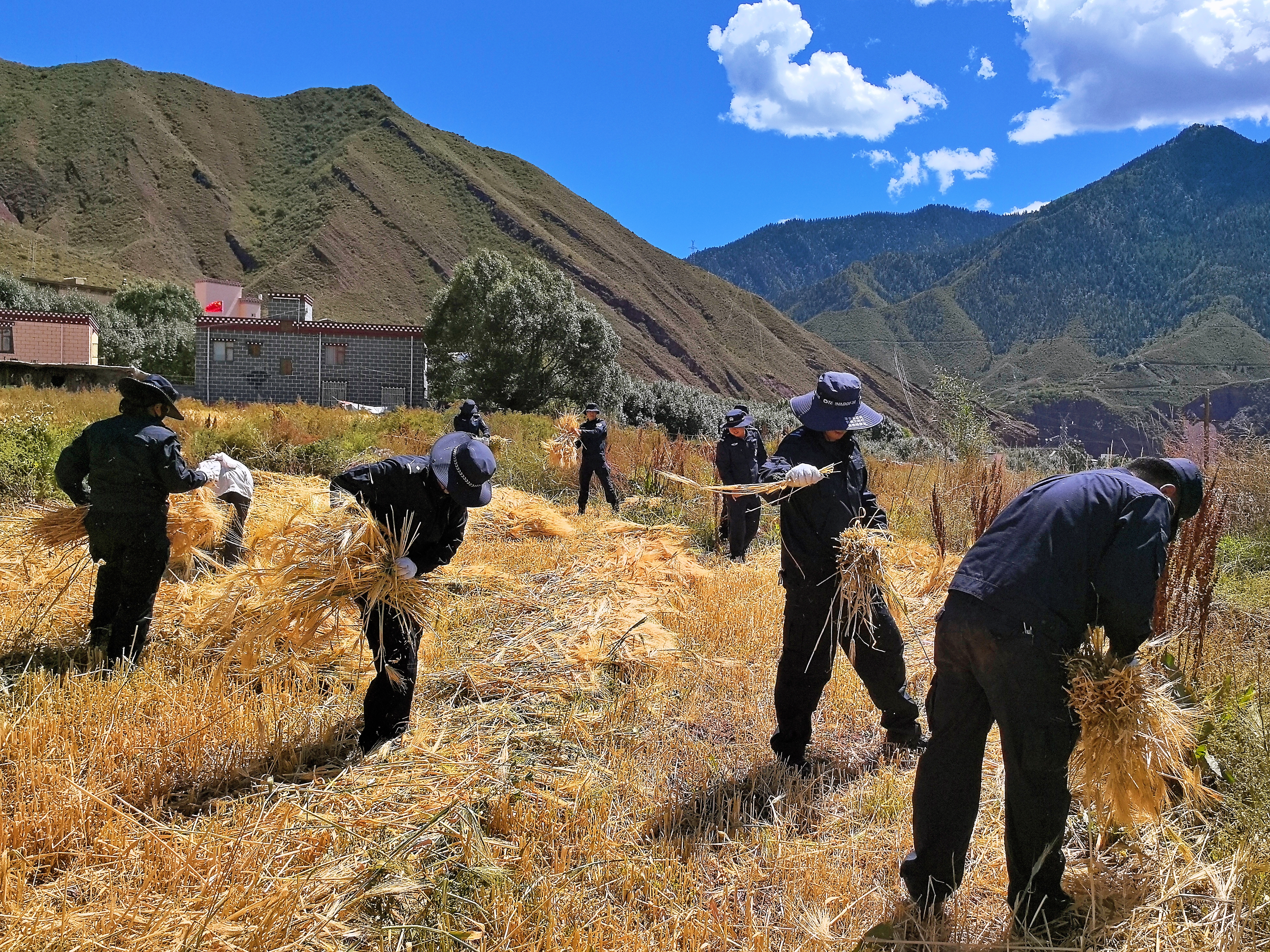 為進一步發(fā)揮基層黨組織戰(zhàn)斗堡壘作用和黨員先鋒模范作用,近日,昌都市卡若區(qū)公安局組織民(輔)警幫助轄區(qū)群眾收割青稞。經(jīng)過民(輔)警和村民的共同努力,當天搶收青稞11畝,幫助群眾解決了燃眉之急。