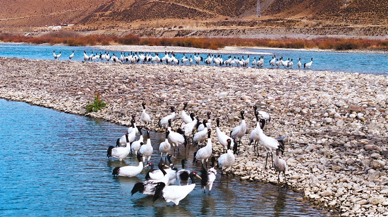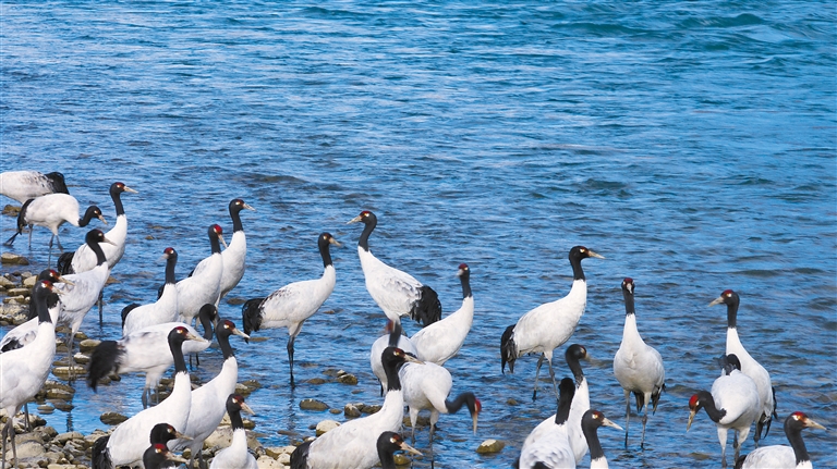 如今,一批又一批黑頸鶴從四川、青海等地啟程,歷經近千公里的長途跋涉,紛紛抵達西藏各越冬地,開啟他們的越冬生活。