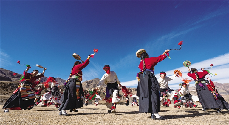 熱巴舞是一種鼓舞,也是一種融說、唱、舞、雜技為一體的綜合性表演藝術,2006年被列入第一批國家級非物質文化遺產名錄。丁青縣有“熱巴藝術之鄉”的美稱,全縣范圍內有68個村(社區)建有熱巴文藝演出隊。