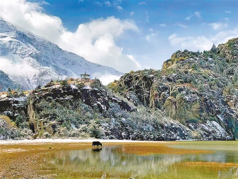 冬季的昌都,是一場視覺的盛宴。當潔白的雪花悠然飄落,覆蓋了連綿的山巒與靜謐的然烏湖,這里仿若成了大自然巧手繪制的一幅多彩畫卷。而大雪覆蓋著的三色湖,此刻也別有風情,皚皚白雪如同輕柔的面紗,遮住了她的容顏,卻又增添了幾分神秘的魅力。遠遠望去,仿佛三個羞澀的美麗姑娘,欲語還休,吸引著人們去探尋她的秘密。再看看孜珠寺,金頂白雪、紅墻銀衣,古色古香的建筑加上絕美的雪景,時間仿佛在此刻凝結。