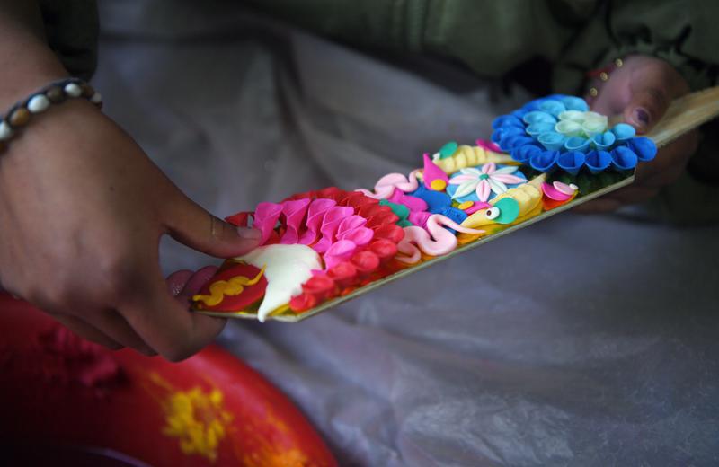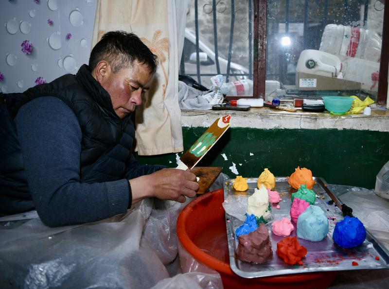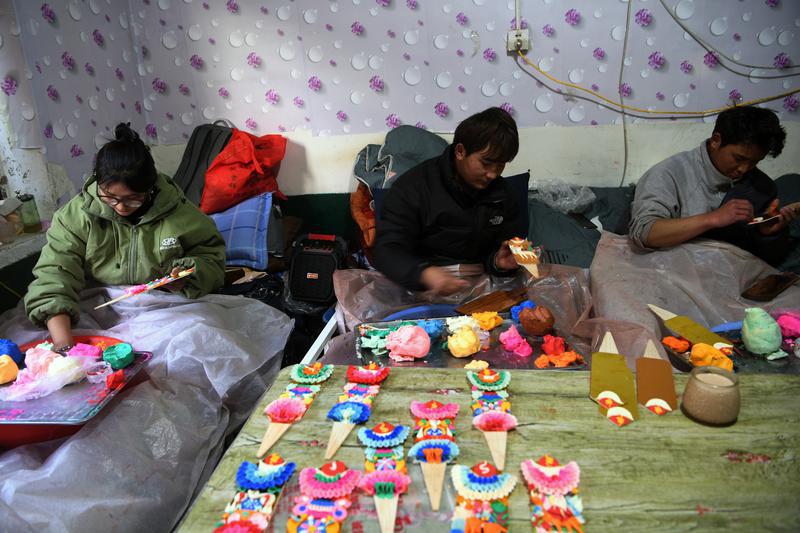 隨著藏歷新年的日益臨近,置辦年貨已然成為老百姓家中的頭等大事,其中酥油花就是藏族人民家家戶戶必備的年貨之一。酥油花,在藏語中稱為“仔卓”,是藏民族雕塑藝術的一種特殊形式,以酥油為原料,以人物、花卉、樹木、飛禽、走獸等為主題的一種手工油塑藝術,具有悠久的歷史。藏歷新年期間,在裝有青稞、糌粑的切瑪盒內插入酥油花,寓意新的一年吉祥、美好。