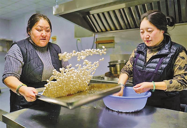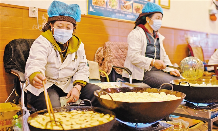 圖為拉薩市城關區夏薩蘇社區工作人員正在準備“古突”。 本網記者 丹增群培 攝