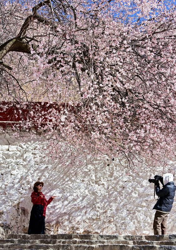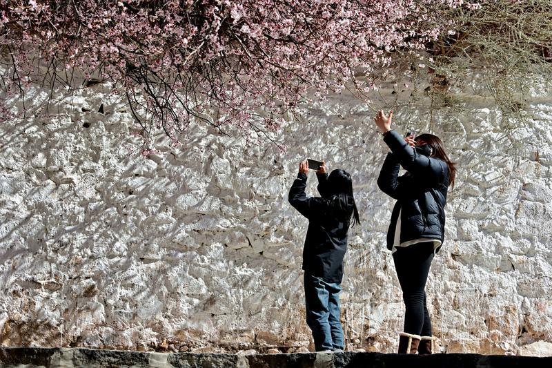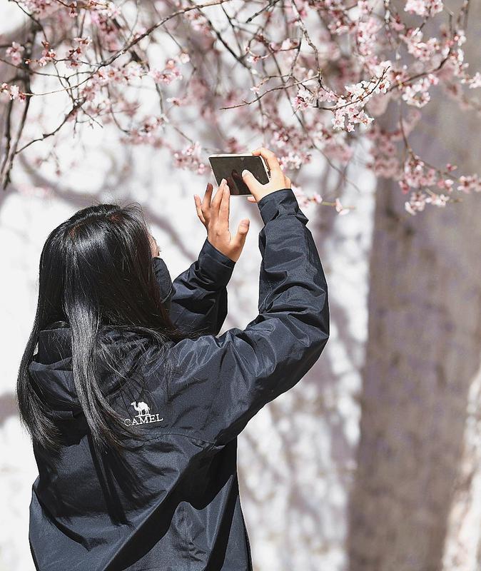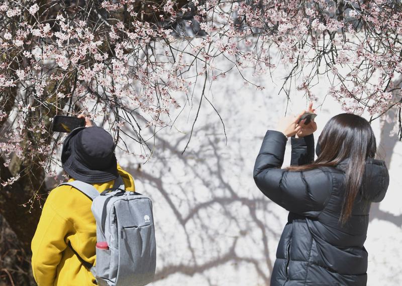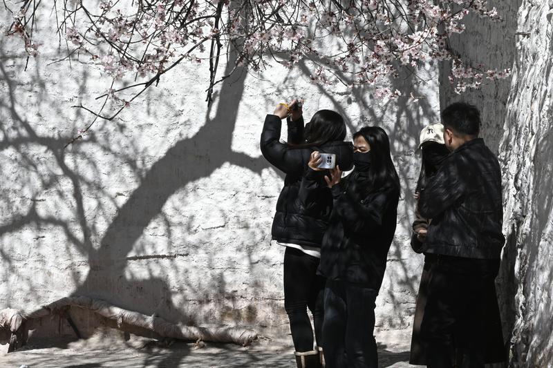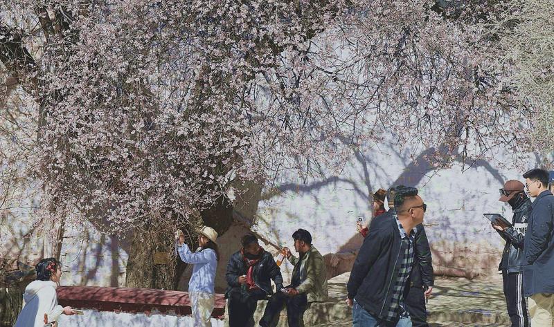 隨著高原氣溫回升,拉薩迎來(lái)春日盛景。位于北郊娘熱鄉(xiāng)的千年古寺帕崩崗,因周?chē)一ǜ?jìng)相綻放,成為游客爭(zhēng)相打卡的熱門(mén)目的地。粉白相間的桃花簇?fù)碇奘系牟厥綄m殿,與遠(yuǎn)處的布達(dá)拉宮遙相輝映,構(gòu)成一幅絕美的高原春色畫(huà)卷