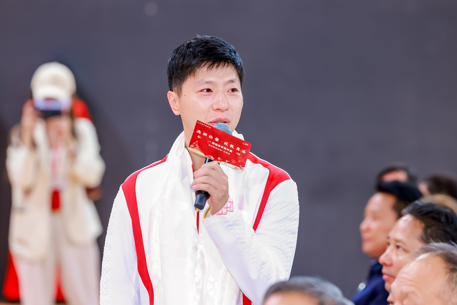 之后,在場的學生帶著對體育的熱愛向奧運冠軍提問,有同學問馬龍,參加了四屆奧運會,獲得了這么多榮譽,對乒乓球的理解有變化嗎?馬龍說:“乒乓球陪伴了我三十年,我對乒乓球的感情無法割舍,這份熱愛和感情讓我堅持到現在,暫時沒有找到理由和乒乓球說再見?!瘪R龍的聲音溫和卻堅定,話音未落,現場便響起雷鳴般的掌聲。冠軍的每一句話都像一簇火苗,點燃了在場年輕人心中對夢想的執著。