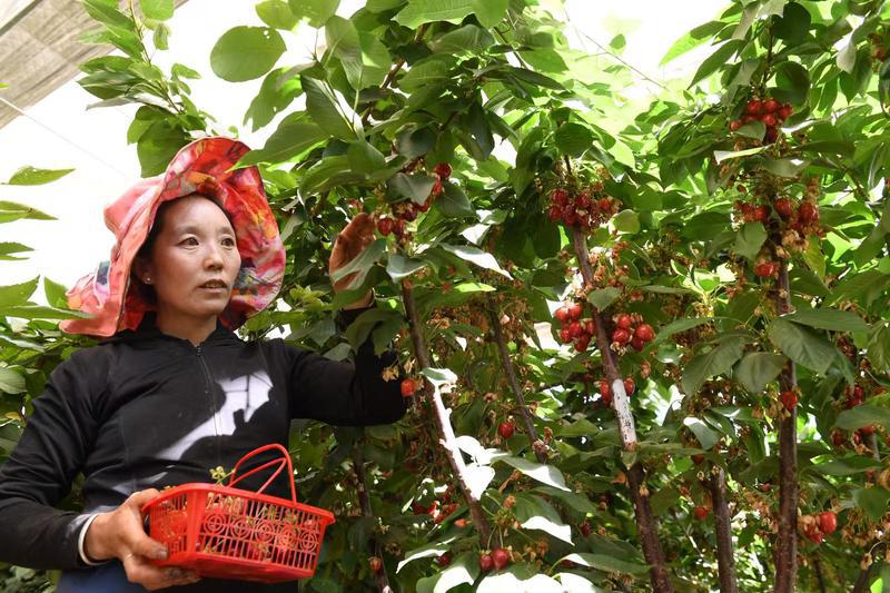 七月的尼木,草木蒼翠,陽光熾熱而濃烈。走進位于尼木縣聶玉村的吞彌現(xiàn)代農(nóng)業(yè)產(chǎn)業(yè)園內(nèi),一棟棟溫室大棚有序地排列著。掀開大棚門簾,紅彤彤的草莓、紅黃相間的櫻桃掛滿枝頭,在綠葉的掩映下散發(fā)出誘人的光澤。據(jù)了解,2024年,園區(qū)櫻桃產(chǎn)量達(dá)5200斤,較上一年同比增長40%,銷售收入實現(xiàn)40萬元;草莓試種大棚產(chǎn)出2200斤,銷售額達(dá)8萬元。到了2025年,7萬株草莓苗的種植規(guī)模已擴大至10棟大棚,半年時間就已結(jié)果1.7萬斤,縣內(nèi)銷售額達(dá)31萬元;新種植的26棟大棚內(nèi)的櫻桃更是碩果累累。