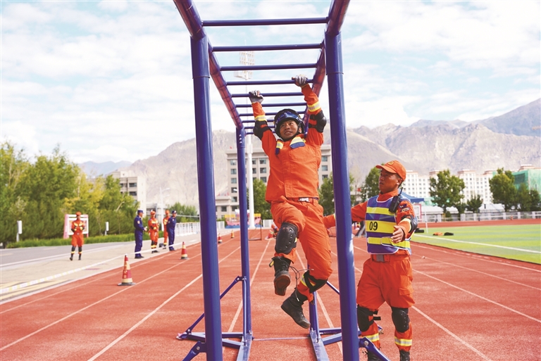 “我們將嚴守比武規則,守牢安全底線,以勇于拼搏、敢打必勝的決心,團結協作、精誠配合,在比武場上盡情展示平日苦練的專業技能,綻放‘火焰藍’青春的耀眼光芒,為守護人民生命財產安全和生態環境安全筑牢堅實防線。”西藏森林消防總隊政治教導員楊秀君說。