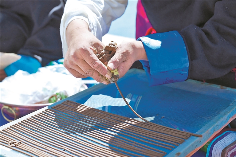 “今天我們帶來了6種藏香文創產品,分別有安神、提神、清潔空氣等系列,這些年我們除了在線下銷售,還要感謝尼木縣委、縣政府積極與線上各大平臺接洽,讓我們的藏香通過線上銷售,走出了尼木,讓北京、南京、天津等城市的客戶通過線上購買。所有藏香都是由縣委、縣政府組織的易地搬遷戶制作,這讓不少群眾不僅能就近就業,還能照顧家里。特別感謝黨和政府對藏香保護和發展所做的各項工作。”縣級非物質文化遺產傳承人洛桑旺堆在活動現場說。