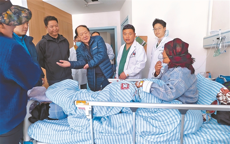 圖為南京市第一醫院關節外科專家團隊了解患者術后康復情況。本網記者 格桑倫珠 攝